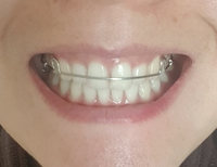 지금은 윗니가 좀 아래로 내려온거 같고 약간 튀어 나와있는 느낌이라 가철식 교정기를 착용했어요.
